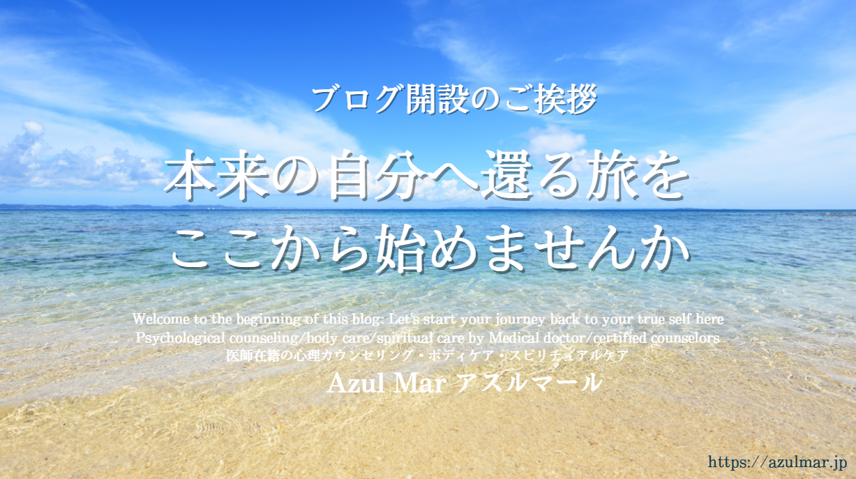 ブログ開設のご挨拶〜AzulMar(アスルマール)へようこそ。医師在籍の心理カウンセリング・スピリチュアルケアで、本当の自分に還る旅を始めませんか